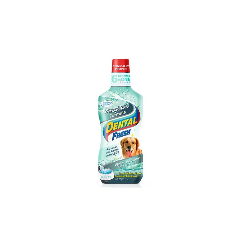 Dental Fresh 503ml Modo de uso: Use diariamente para máxima efectividad. Agregue una cucharadita por cada 250ml de agua en un recipiente. O siga las instrucciones de su veterinario. Seguro para perros y gatos.