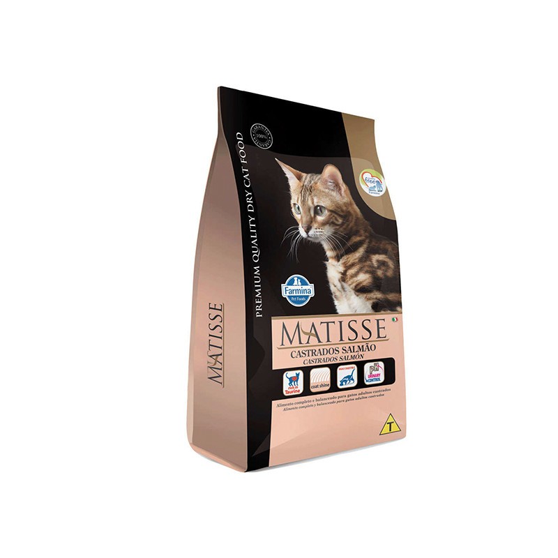 Matisse Salmón para Gatos Castrados es un alimento completo y balanceado desarrollado especialmente para atender las necesidades de los gatos castrados