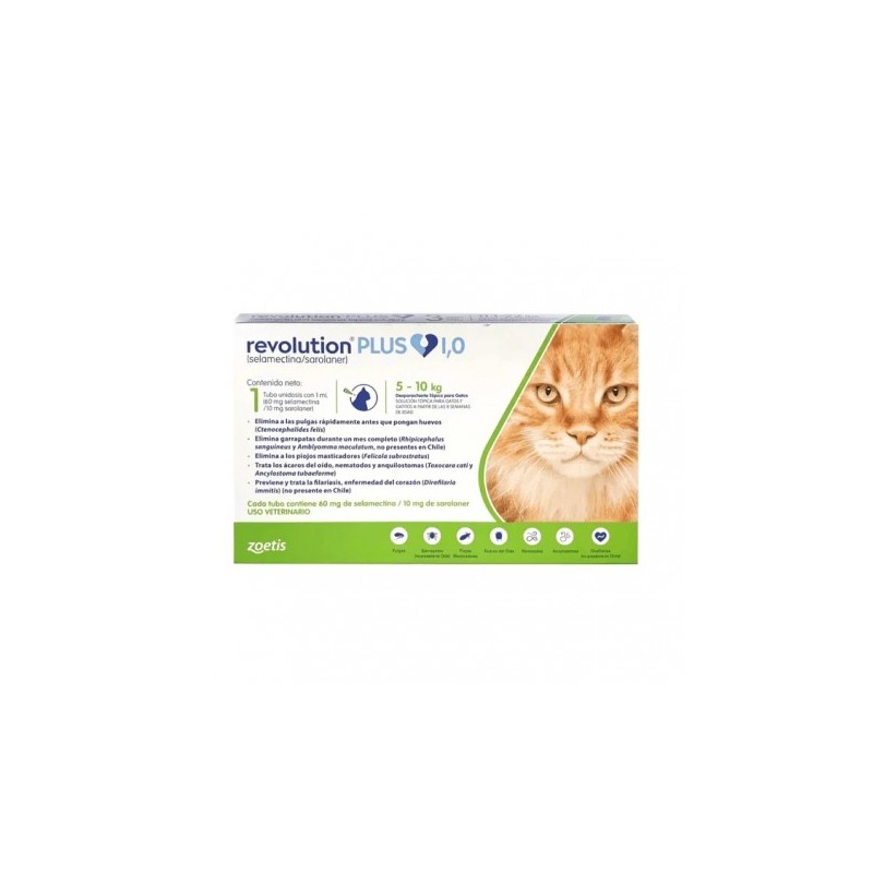 Control y prevención de la infestación por pulgas (Ctenocephalides felis) Prevención de la dirofilariasis (Dirofilaria immitis) Tratamiento y control de la infestación por ácaros auriculares (Otodectes cynotis) Tratamiento y control de parásitos intestinales Lombrices intestinales (Toxocara cati) Larva migratoria (Ancylostoma tubaeforme)