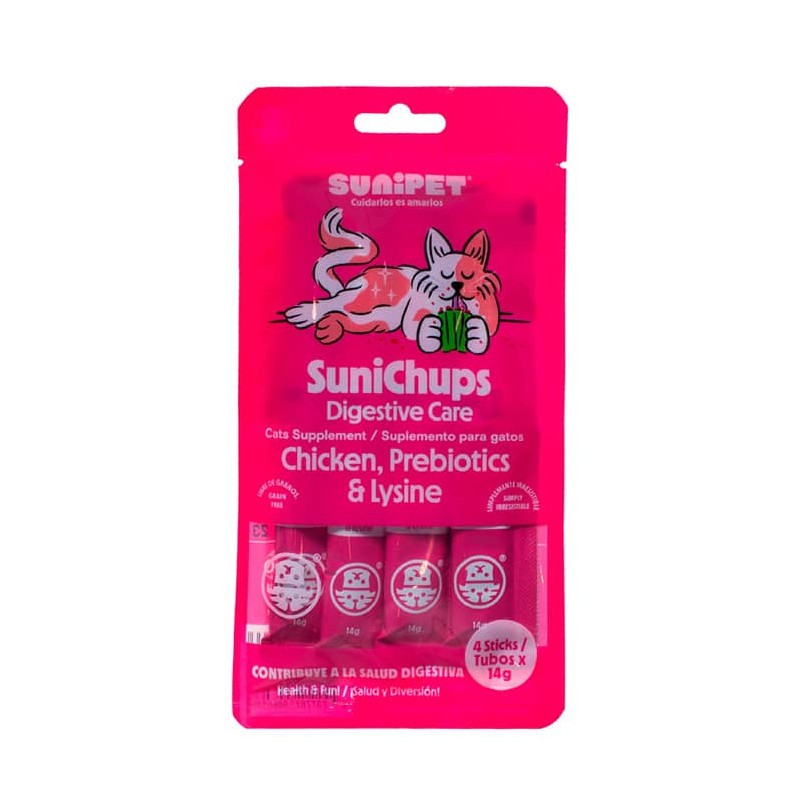 Con potentes ingredientes que contribuyen al cuidado de la salud digestiva, como Tapioca, que protege la mucosa gastrointestinal, disminuyendo procesos inflamatorios, estimulando la buena digestión. Aceite de oliva, que combate el estreñimiento y L-Lisina, aminoácido esencial, que ayuda de manera natural a la inmunidad y estimula producción de anticuerpos, hormonas y enzimas. Human Grade, 100% Natural, sin conservantes artificiales, bajo en calorías y libre de granos. Con un delicioso sabor a pollo, excelente fuente de proteínas, bajo en grasas y de muy fácil digestión. Envase de 4 unidades.56 gr. (4 sticks de 14 gr cada uno)