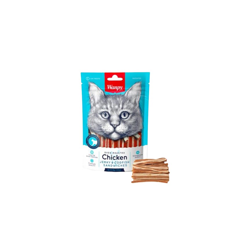 Pechuga de pollo, glicerina, bacalao, proteína vegetal, almidón, sorbitol, extracto de mariscos, colorantes permitidos por la UE, sal, azúcar, aceite vegetal. Libre de granos, soya y gluten.