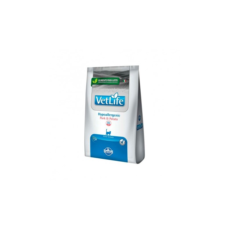 Farmina Vet Life Natural Feline Hypoallergenic Pork & Potato está formulado para reducir la presencia de factores que causan reacciones alérgicas e intolerancias en gatos, frecuentemente relacionados con proteínas y residuos alimentarios a los que el gato puede ser sensible.
