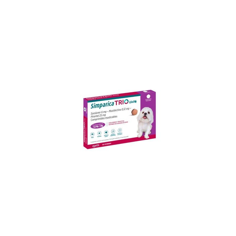 Simparica® Trio es una formulación oral de apoyo interno y externo para perros, diseñada para promover el bienestar integral en mascotas expuestas a agentes ambientales comunes. Presentada en tabletas masticables palatables, es fácil de administrar y adecuada para perros desde 8 semanas de edad y con un peso mínimo de 5 kg.