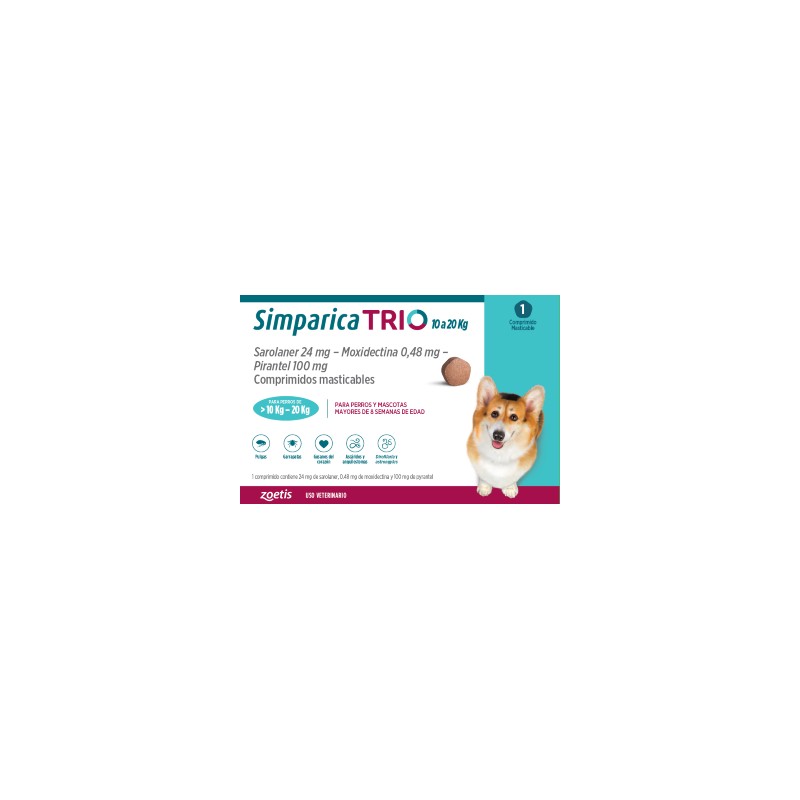 Simparica® Trio es una formulación oral de apoyo interno y externo para perros, diseñada para promover el bienestar integral en mascotas expuestas a agentes ambientales comunes. Presentada en tabletas masticables palatables, es fácil de administrar y adecuada para perros desde 8 semanas de edad y con un peso mínimo de 5 kg.