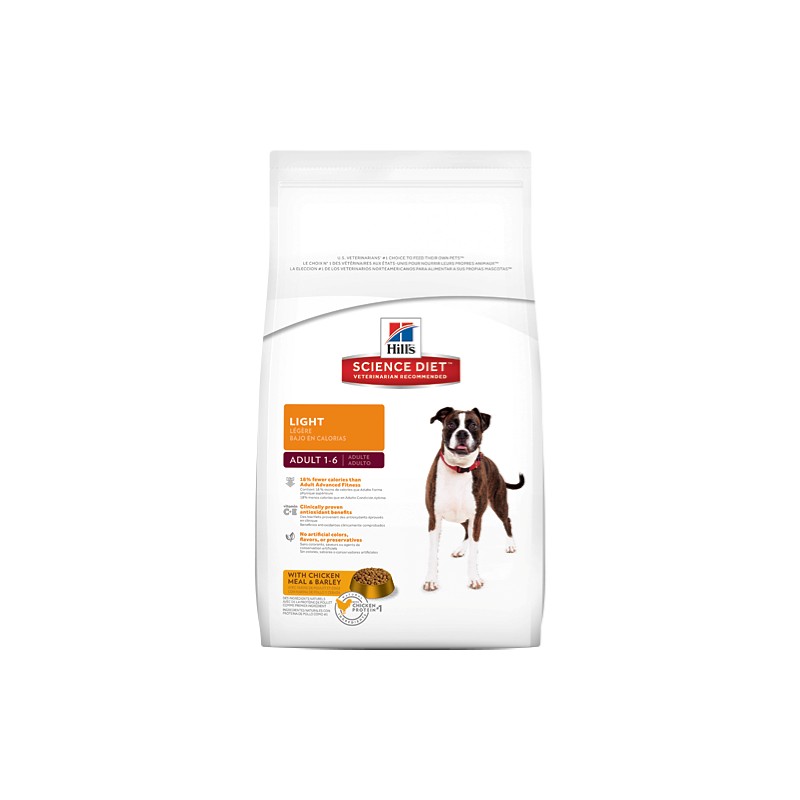 Si su perro está aumentando de peso, el alimento para perros Science Diet® Light Adult, puede ser útil. Contiene menos calorías y grasa para mantener el peso de los perros bajo control. También proporciona un delicioso sabor y la nutrición completa y balanceada que los perros adultos necesitan.