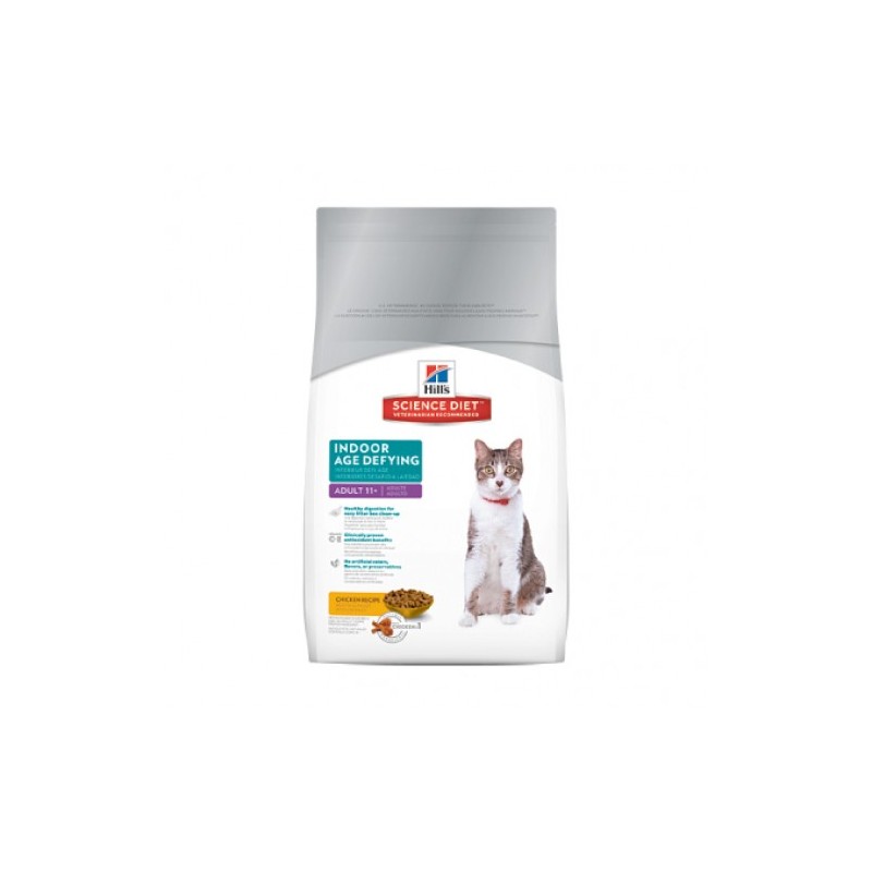 Hill's® Science Diet® Adultos 11+ Edad indoor, proporciona una nutrición equilibrada y precisa adaptada a los gatos mayores con un estilo de vida interior