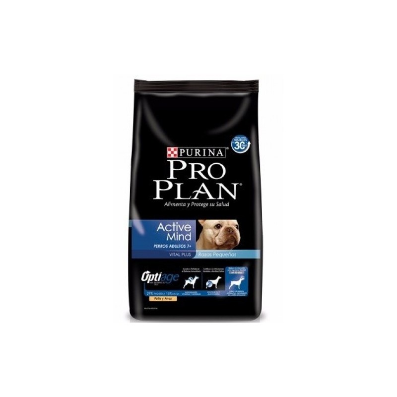 Desarrollado por veterinarios y nutricionistas, Pro Plan® Active Mind 7+ con tecnología exclusiva Optiage® con aceites botánicos que proveen una fuente alternativa de energía para el cerebro en perros de 7 o más años. Esta dieta diaria ayuda a mejorar la memoria y atención de los perros, prolongando su expectativa y calidad de vida.